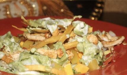 Grilled Chicken, Pineapple, Mango Pico de Gallo, and shredded cheese on a bed of Spring Mix, drizzled with Avocado Ranch. Available with Shrimp.